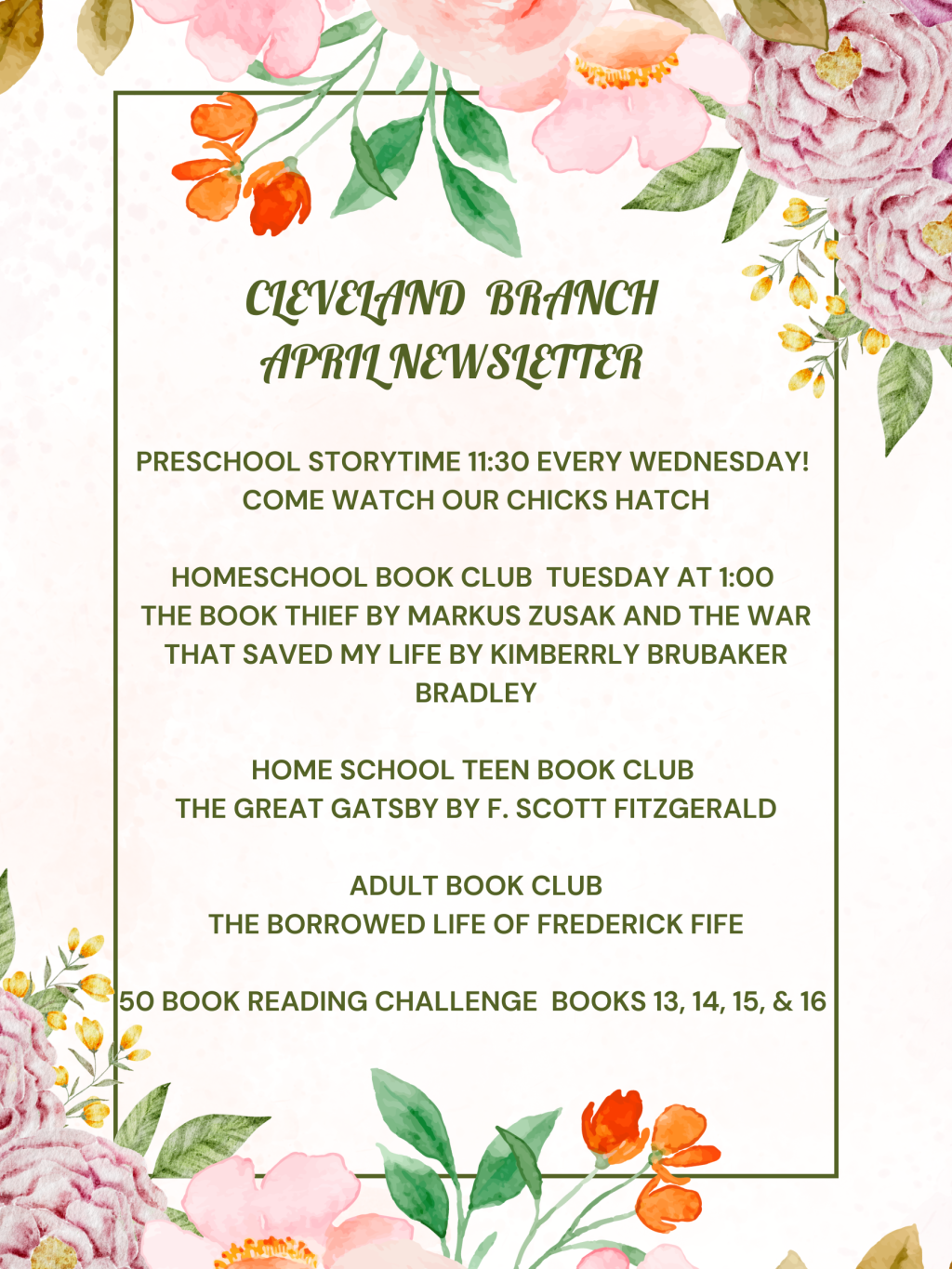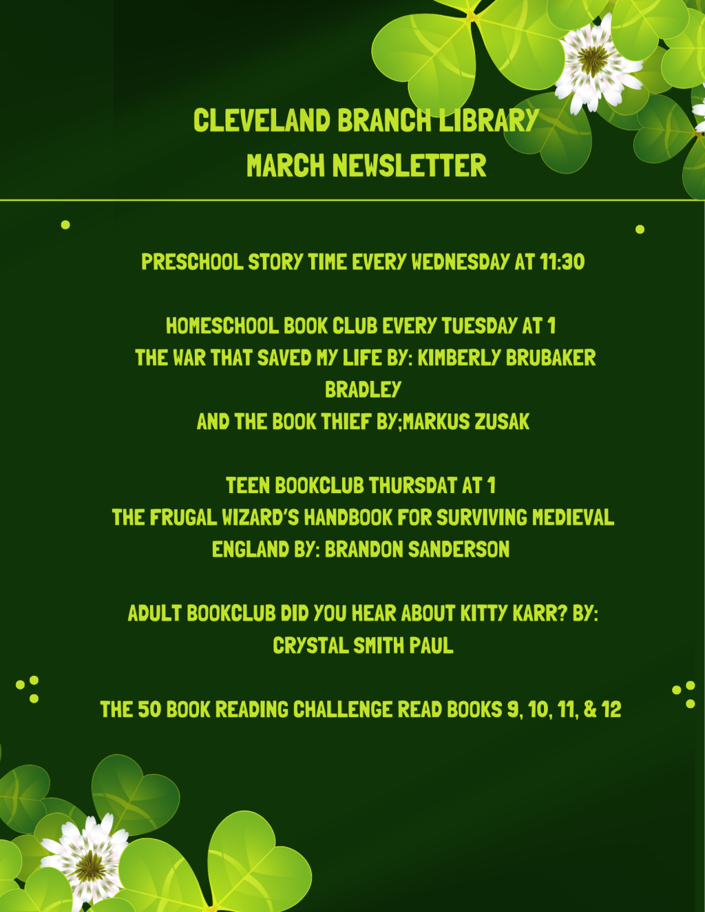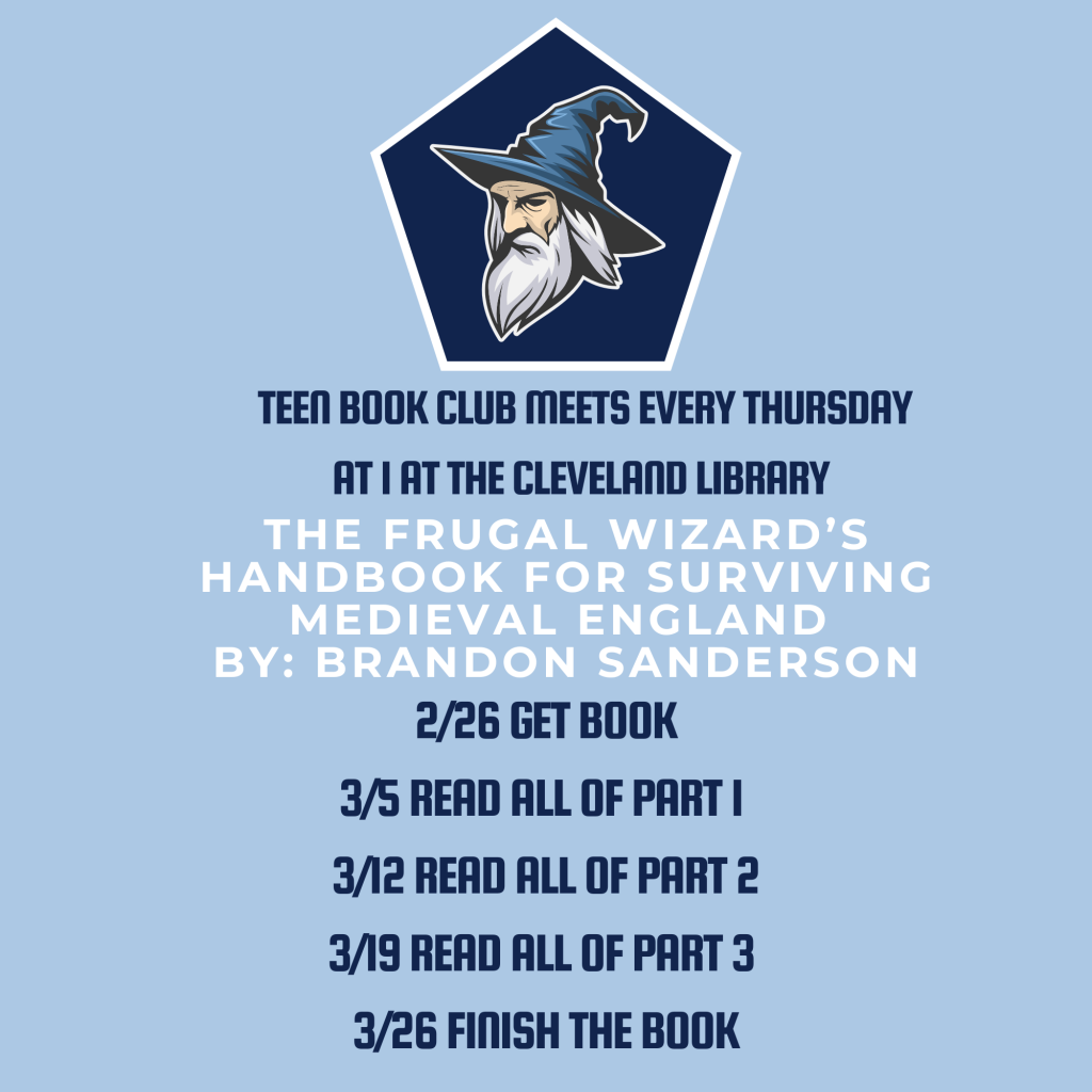 Homeschool teens come to our book club! We meet every Thursday at 1 at the Cleveland Library!